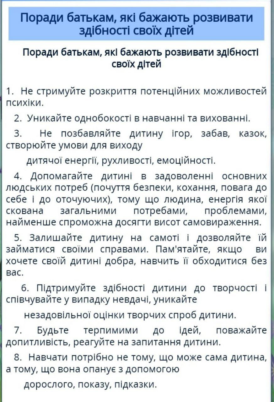 Батькам 6 способів допомогти дитині подолати страх невдачі: Ефективні-поради-для-батьківЗавантажити Ефективні-стратегій-виріщення-конфліктівЗавантажити Найліпший-мотив-до-діяльностіЗавантажити Поради-батькам-дитини-схильної-до-суїцидальної-поведінкиЗавантажити Памятка-батькам-першокласникаЗавантажити памятка-батькамЗавантажити Лекція-для-батьків-про-особистий-прикладЗавантажити Основні-міфи-про-суїцидиЗавантажити